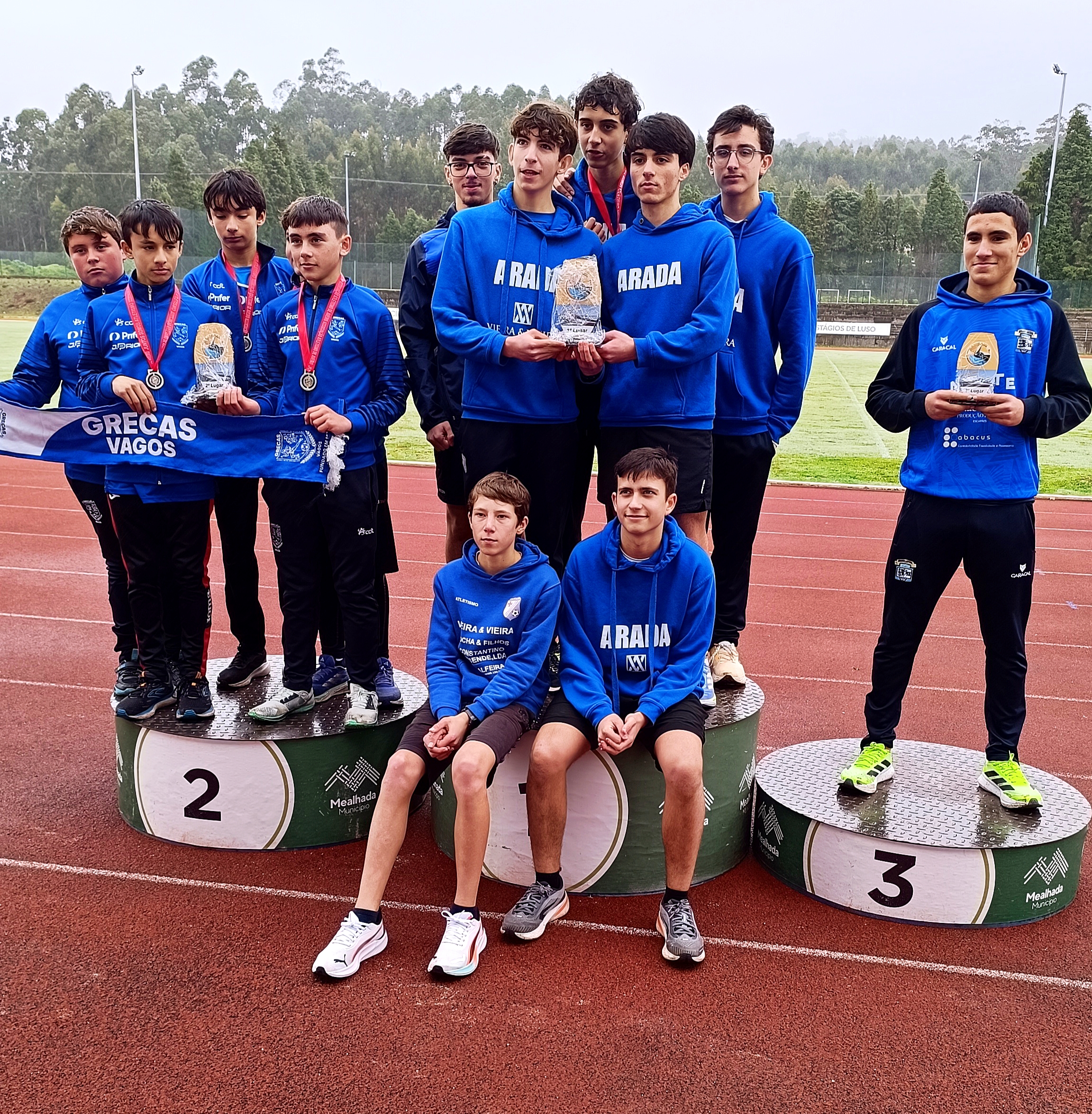 Maria Leonor Sousa/ACDCVC no Comprimento; João Salvador Santos/LLFC na Vara e 60M/Barr; Francisca Campos/ACDCVC nos 3000M/MX; Mariana Ferreira/CAOB nos 60M; Isaac Cruz/CAOB nos 60M e 200M; Ricardo Pinto/AFIS no Comprimento e Triplo SAlto; Ana Rocha/ACDCVC na Altura, Triplo Salto e 60M/Barr; Carolina Ferreira/AAC nos 1500M;Ruben Nibra/GRECAS nos 1500M e 800M; Raquel Raposo/ACDCVC nos 300M e 200M; Lourenço Fardilha/AFIS nos 300M; André Carvalho/ACDCVC na Altura; Margarida Vieira/ARAC nos 3000M; Martim Fonseca/CDFE nos 3000M; Inês Reis/LLFC no Peso; Mariana Santos/ARAC nos 800M;Gabriel Oliveira/JAM no Peso e 4X200M; Simão Oliveira/JAM nos 4X200M; João Sá/JAM nos 4X200M; Dinis Rodrigues/JAM nos 4X200M; Maria Sarabando, Gilsa Santana, Alice Ferreira e Margarida Pinho do GRECAS nos 4X200M.